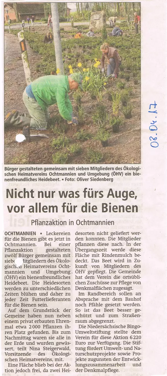Wir als ÖHV haben dann erstmal gesagt, das machen wir gern, haben als kleiner Verein jedoch keine Möglichkeit, so umfangreiche Pflanzungen zu finanzieren. Dann hörten wir von der Niedersächsischen Bingo Umweltstiftung und haben dort die Förderung beantragt (siehe oben).